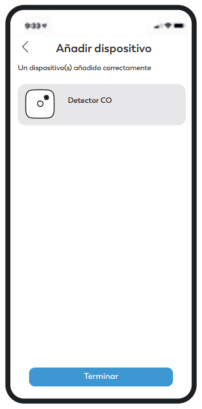 | (4) Ahora ya podremos añadir dispositivos. Selecciona "añadir dispositivos" si es tu primer producto o el botón (+) en la esquina superior derecha. | (5) Mantén pulsado el botón central del dispositivo durante más de 5 segundos. El LED comenzará a parpadear en rojo rápidamente (una vez por segundo), indicando que el detector está listo para ser vinculado. | (6) Haz clic en "Añadir". |