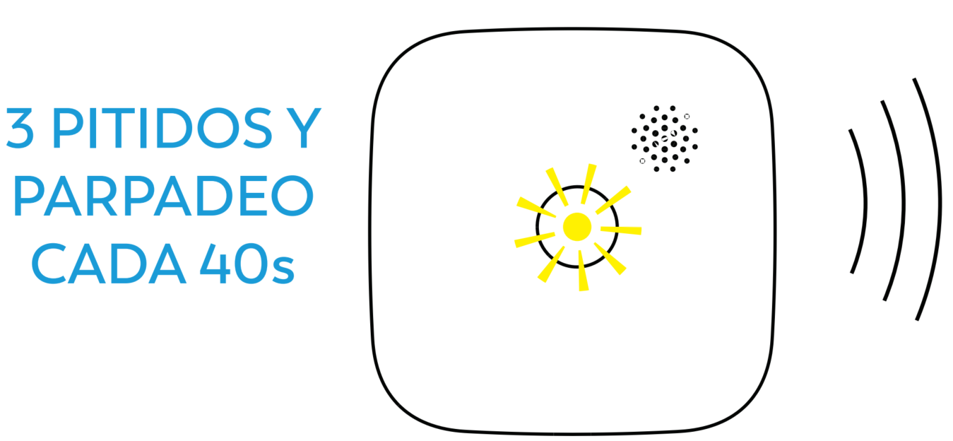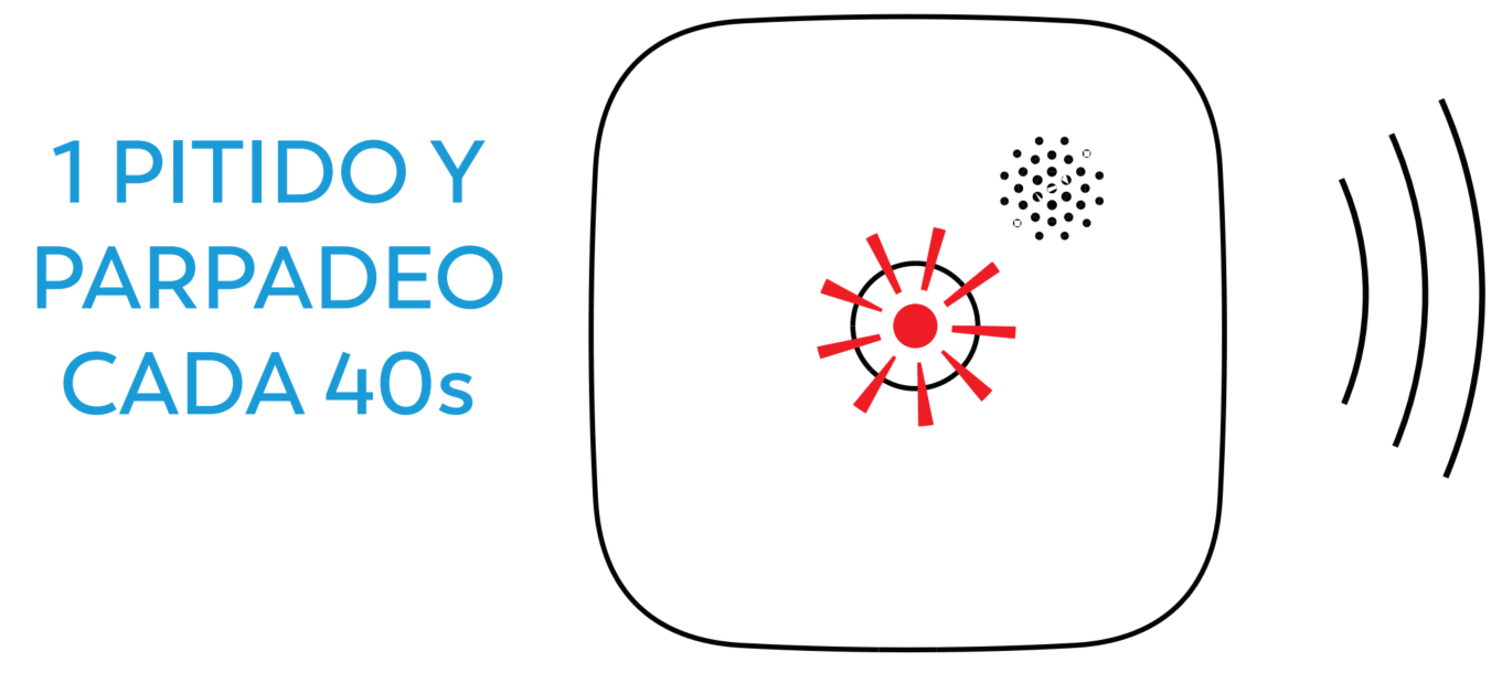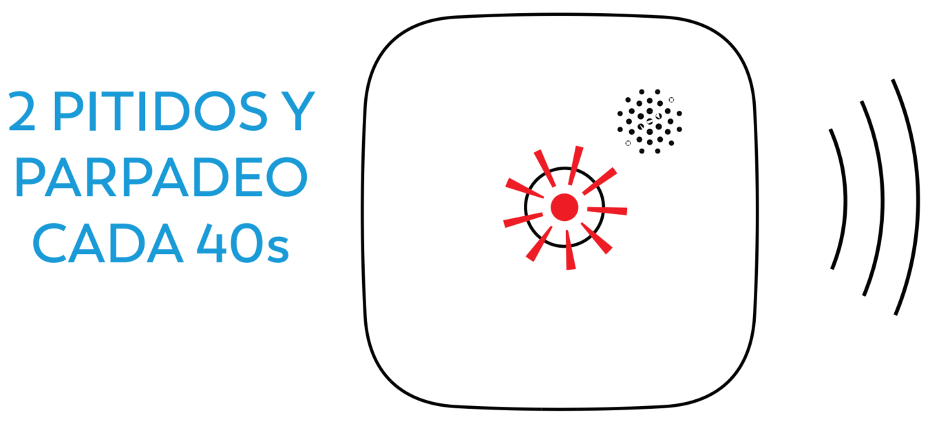 Si la pila se está agotando: El detector emitirá 1 pitido de alarma y parpadeará una vez cada 40s. | Si se produce un fallo del sensor: El detector emitirá 2 pitidos de alarma y parpadeará dos veces cada 40s. |