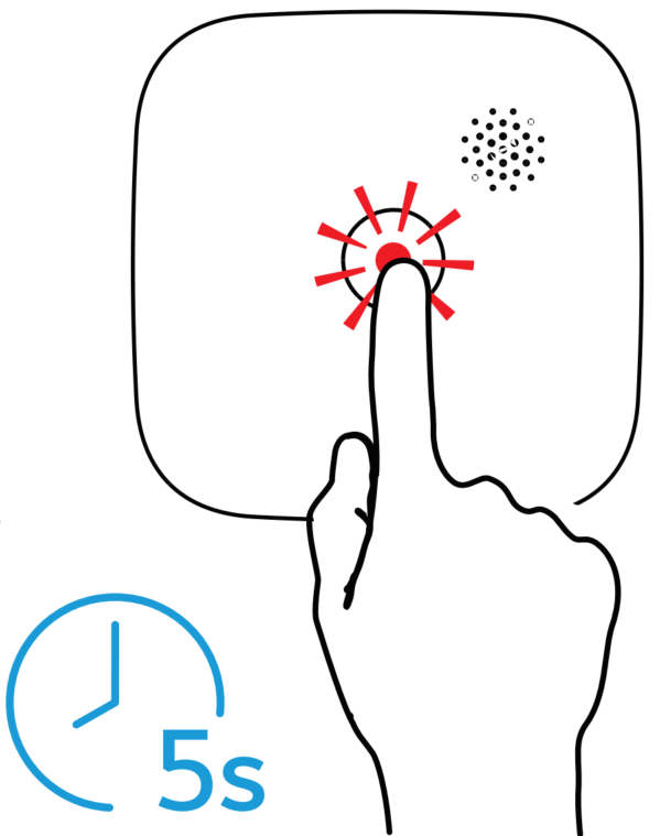 ![]() | Elimina el dispositivo de tu app Garza Smart si había sido vinculado previamente. Mantén pulsado el botón “Test” durante más de 5 segundos. El LED comenzará a parpadear en rojo rápidamente (una vez por segundo), indicando que el dispositivo está listo para ser vinculado. Si no parpadea, o parpadea lentamente, mantén pulsado el botón “Test” de nuevo durante 5 segundos para que entre en modo vinculación rápida. |