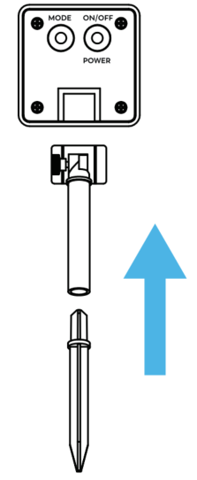 (1) Acopla la pica de montaje y fíjala a la parte trasera de la placa solar. | (2) Inserta la pica en suelo blanco y asegúrala firmemente. |