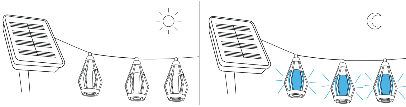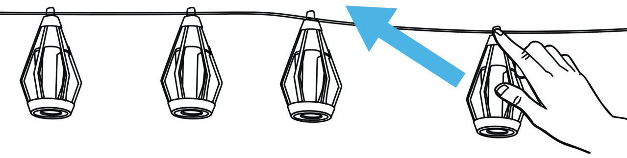 (3) Cuelga las bombillas en la superficie que prefieras. |