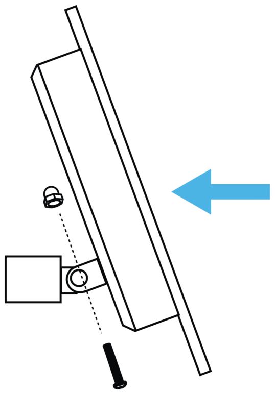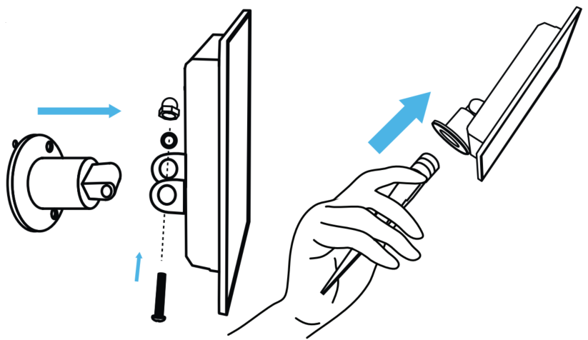 (1) Marca y perfora los agujeros de instalación y atornilla el soporte a la pared. | (2) Fija la placa al soporte ayudándote de los tornillos y tuercas incluidos. Luego, orienta la placa hacia el sol. |