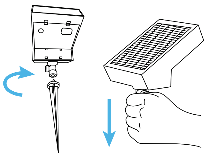 - Elige un lugar de instalación en el que la pica solar reciba suficiente luz solar directa durante el día para optimizar la carga de la batería (preferentemente orientado hacia el sur, en un lugar sin sombra, alejado de otras fuentes de luz que puedan interferir en el rendimiento del sensor crepuscular, etc.).