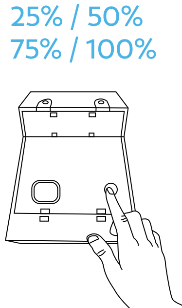 (2) Pulsa el botón de la parte trasera de nuevo para elegir el modo de iluminación que mejor se adapte a tus necesidades (25% / 50% / 75% / 100%). |