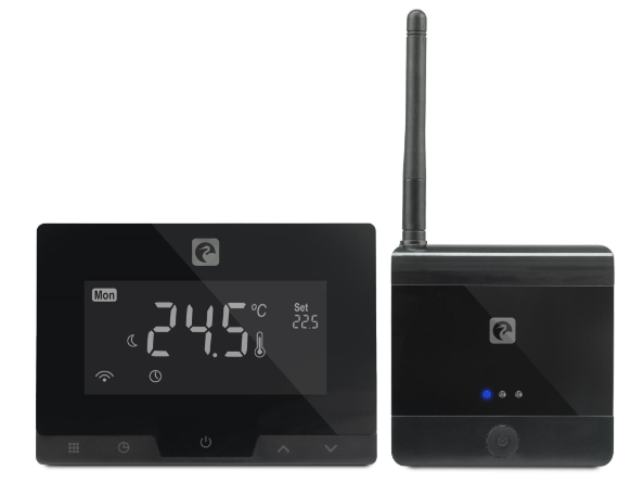 En Garza contamos con el modelo Fuji, un termostato digital inalámbrico con un diseño cuidado que incluye un receptor conectado a la caldera o electroválvula y un termostato portátil con sensor de temperatura integrado, especialmente útil en viviendas donde la estancia principal no refleja bien la temperatura del resto de la casa o cuando quieres priorizar el confort en espacios concretos.