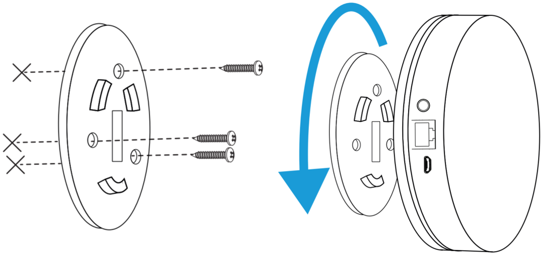 Modo de instalación A Conecta el bridge a la corriente y al router mediante los cables USB y cable de ethernet incluidos. Luego deposítalo sobre una superficie plana. | Modo de instalación B Si prefieres fijarlo en la pared o en alguna otra superficie para más seguridad, puedes ayudarte del soporte y los tacos y tornillos incluidos. |
