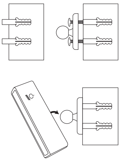 MODO C2. CON SOPORTE Y ATORNILLADO A LA SUPERFICIE DESEADA |