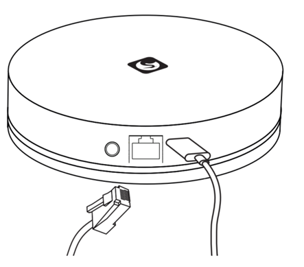 Modo de instalación A Conecta el bridge a la corriente y al router mediante los cables USB y cable de ethernet incluidos. Luego deposítalo sobre una superficie plana. | Modo de instalación B Si prefieres fijarlo en la pared o en alguna otra superficie para más seguridad, puedes ayudarte del soporte y los tacos y tornillos incluidos. |