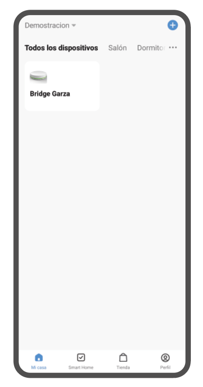 | (2) Accede a tu bridge, previamente vinculado, desde la app Garza Smart . | (3) Pulsa "Agregar dispositivos" y, a continuación, "El LED ya parpadea" o "Continuar". | (4) Tras unos segundos, la bombilla dejará de parpadear, confirmando la correcta vinculación. Pulsa "Terminar" en tu app Garza Smart para finalizar el proceso. |