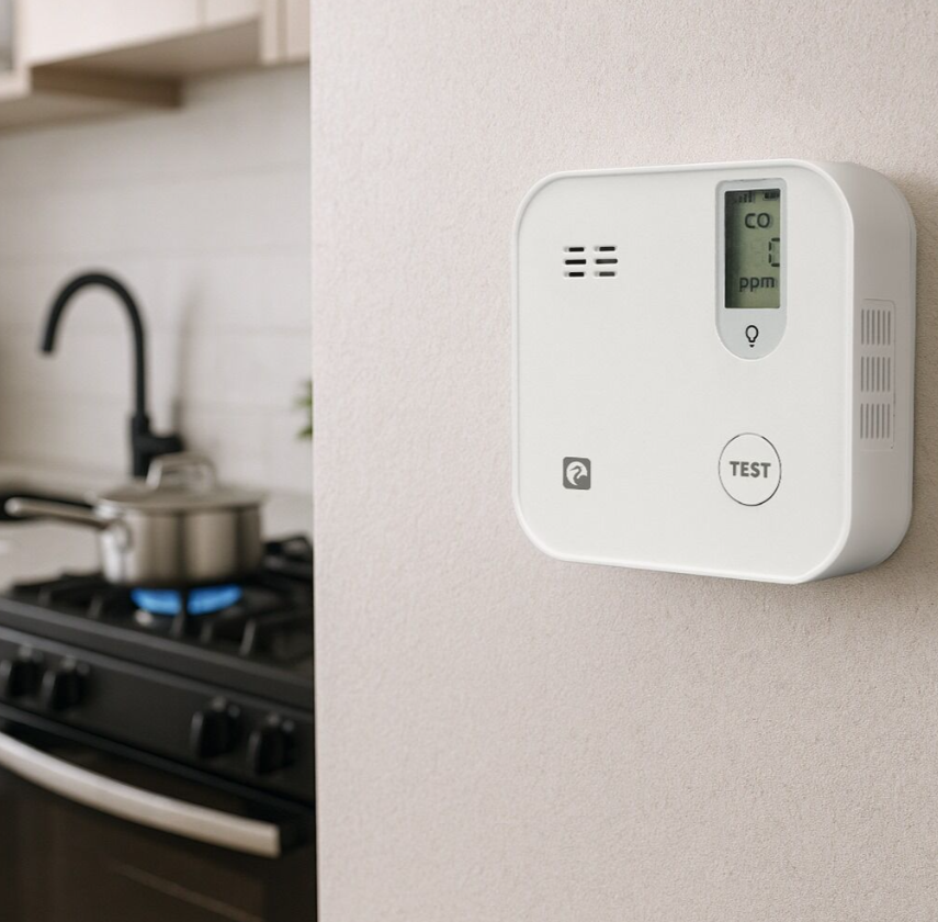 - Este dispositivo está diseñado exclusivamente para detectar monóxido de carbono (CO), un gas tóxico que se genera en combustiones deficientes debido a una ventilación inadecuada. Ejemplos comunes incluyen el uso de braseros en habitaciones cerradas o motores en garajes sin ventilación. En condiciones normales y bien ventiladas, como con la combustión de butano, se produce dióxido de carbono (CO₂), no CO.