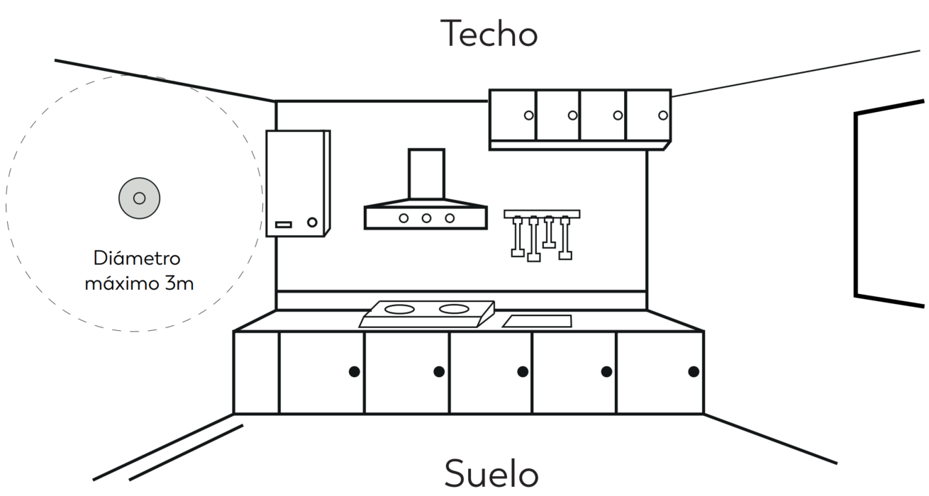 - Evita instalarlo en armarios, sobre fregaderos, cerca de utensilios de cocina, puertas, ventanas, extractores o salidas de ventilación, ya que las corrientes de aire pueden afectar su funcionamiento.