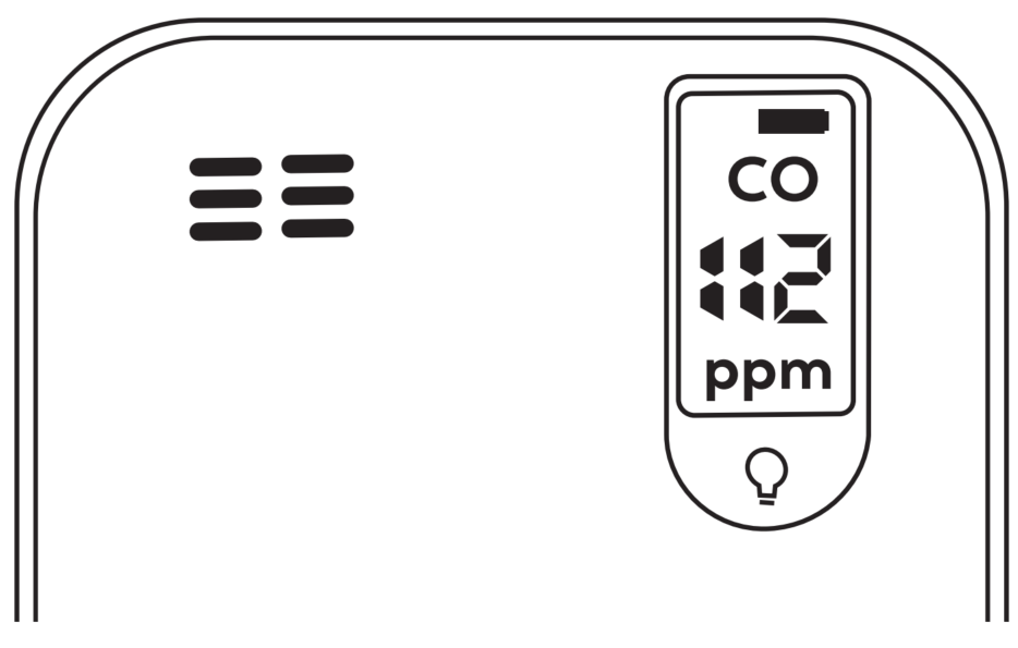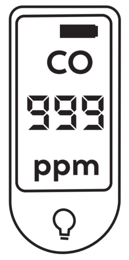 Si se superan los umbrales de alarma: El detector emitirá 4 pitidos de alarma de forma continua y el LED parpadeará en rojo. Además, en la pantalla aparecerá la concentración de ppm. | Si se superan los umbrales de alarma fuera del rango permitido )999ppm): En la pantalla se mostrará “999ppm”. |