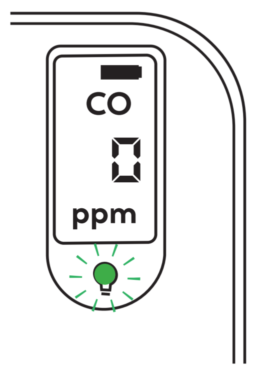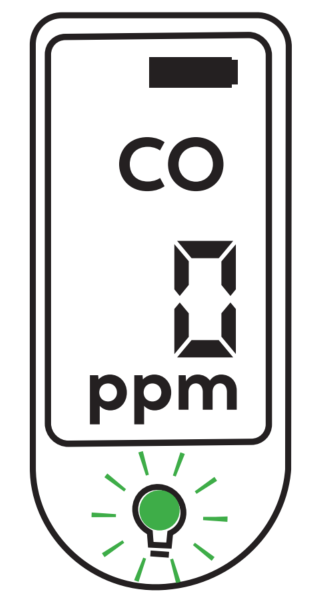 Si el detector trabaja con normalidad: El LED parpadeará en verde cada 40s y aparecerá “0ppm” en la pantalla. | Si las pilas se están agotando: El detector emitirá 1 pitido de alarma, el LED parpadeará en amarillo 1 vez cada 40s y en la pantalla aparecerá el indicador de batería baja. |