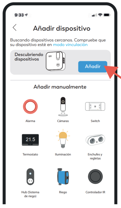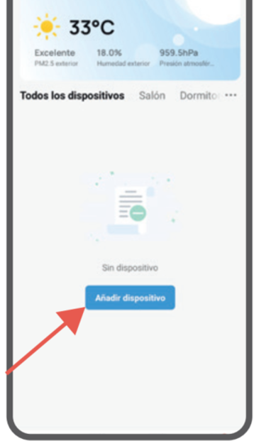 (4) Ahora ya podremos añadir dispositivos. Selecciona "añadir dispositivos" si es tu primer producto o el botón (+) en la esquina superior derecha. | (5) Mantén pulsado el botón “Test” durante más de 5 segundos. El LED comenzará a parpadear en rojo rápidamente (una vez por segundo) y en la pantalla se mostrará “Par”, indicando que el dispositivo está listo para ser vinculado. | (6) Haz clic en "Añadir". |