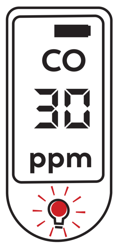 Una vez activada, la alarma se mantiene en funcionamiento hasta que la concentración descienda por debajo de las 30ppm. |