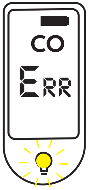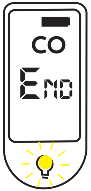 Si se produce un fallo del sensor: El detector emitirá 2 pitidos de alarma, el LED parpadeará 2 veces en amarillo cada 40s y en la pantalla se mostrará “Err”. Por favor, desecha el dispositivo si el sensor no funciona correctamente. | Si la vida útil del detector está llegando a su fin: El detector emitirá 3 pitidos de alarma cada 60s, el LED permanecerá encendido en amarillo y en la pantalla se mostrará “End”. Por favor, desecha el dispositivo si su vida útil está llegando a su fin. |