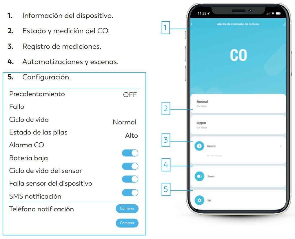 ![]() ![]() | 10 años de vida útil. Este detector ha sido diseñado para ofrecer una protección fiable durante una década completa, lo que lo convierte en una opción segura y duradera para el hogar. Controla la seguridad de tu hogar desde cualquier lugar y en tiempo real a través de tu app Garza Smart. Recibe alertas sobre el nivel de CO visual y sonoramente, y a través de las notificaciones de tu app Garza Smart. Sensor electroquímico de alta estabilidad. Su reactivo químico detecta con precisión la concentración de CO producida por la conjunción de un proceso de combustión del CO2 (gas natural, propano, gasolina, petróleo, queroseno, madera o carbón) y una mala ventilación. Compatible con todos los detectores Smart de Garza. Configura tu ecosistema domótico de seguridad combinándolos según tus necesidades. Compatible con Garza Assist, un servicio de seguridad de valor añadido, activable desde tu app Garza Smart, que te permite recibir las alertas de los detectores a través de SMS o llamada. |